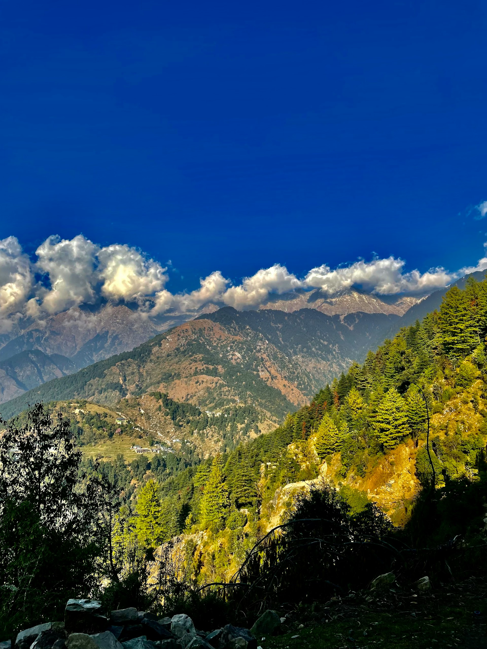 Begin the trek from Bhagsu Nag village, following scenic rhododendron trails ascending toward Dharamkot. The route passes through oak, cedar, and rhododendron forests, offering peaceful surroundings and occasional views of the Dhauladhar range. Visit Buddhist stupas and meditation huts before continuing towards Naddi viewpoint. A short walk leads to Bahl campsite, crossing a freshwater stream along the way. Guests may opt for a short hike to Guna Devi Temple or relax beside the stream. Overnight stay in tents or basic guesthouse at Bahl. -